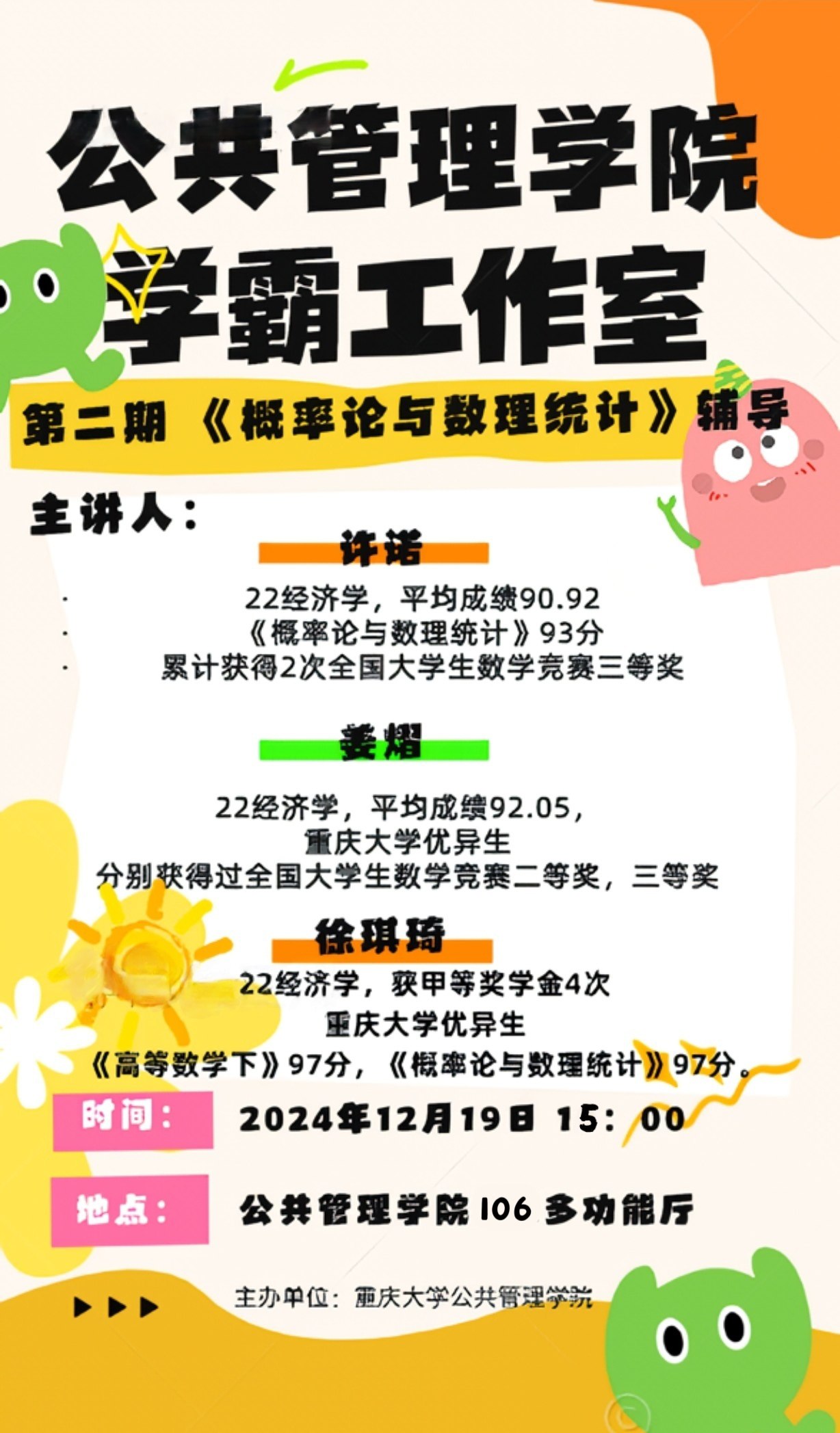 “学霸工作室”第二期《概率论与数理统计》期末考前辅导在肉视频