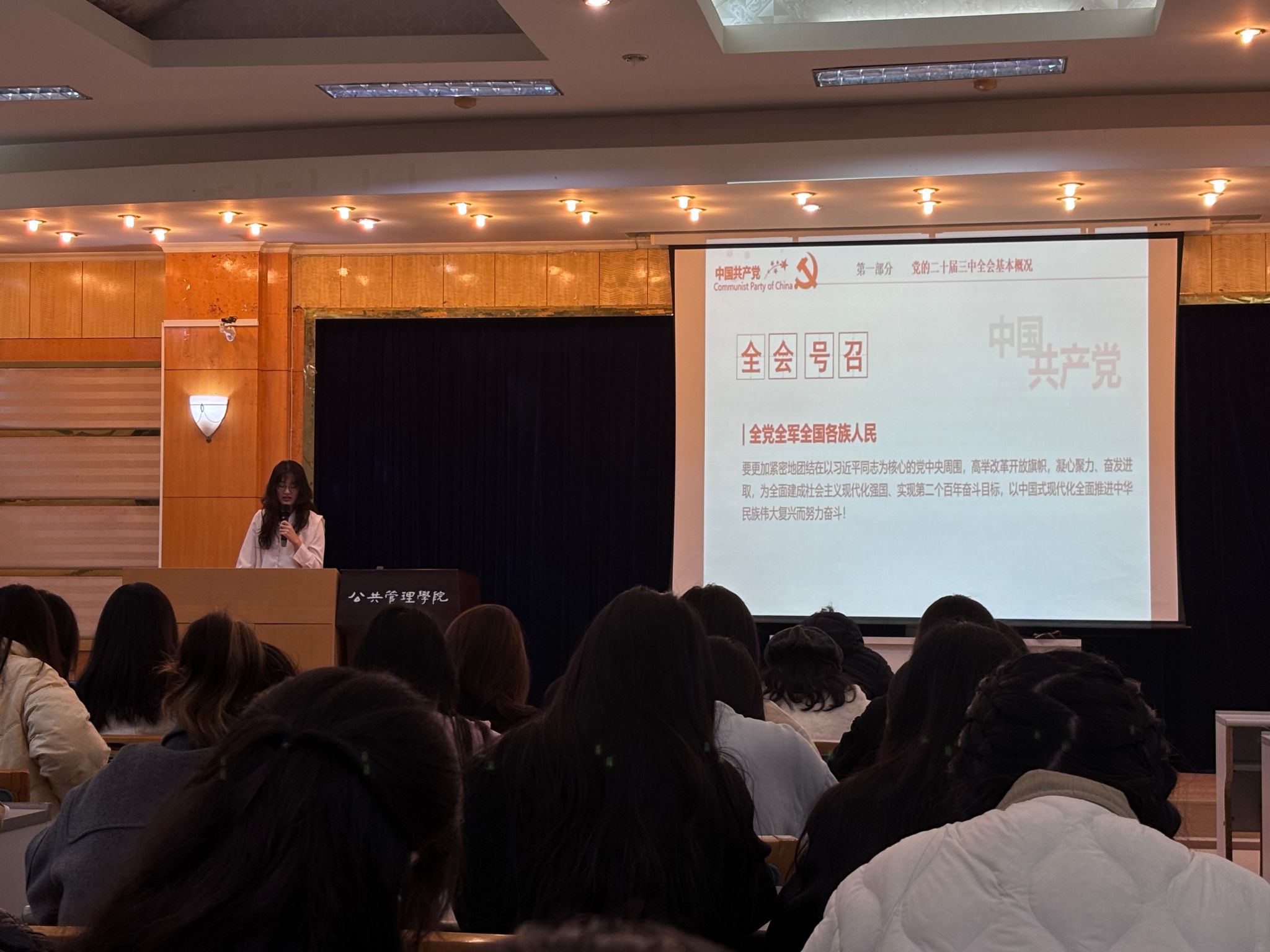 2022级高级青马班的学员李璇围绕党的二十届三中全会精神,为大家带来了精彩的主题演讲。她深入浅出地阐述了党的二十届三中全会的核心内容、重要意义和深远影响,引导同学们充分认识到新时代青年所肩负的历史使命和责任担当,生动而富有感染力的演讲赢得了同学们的阵阵掌声。