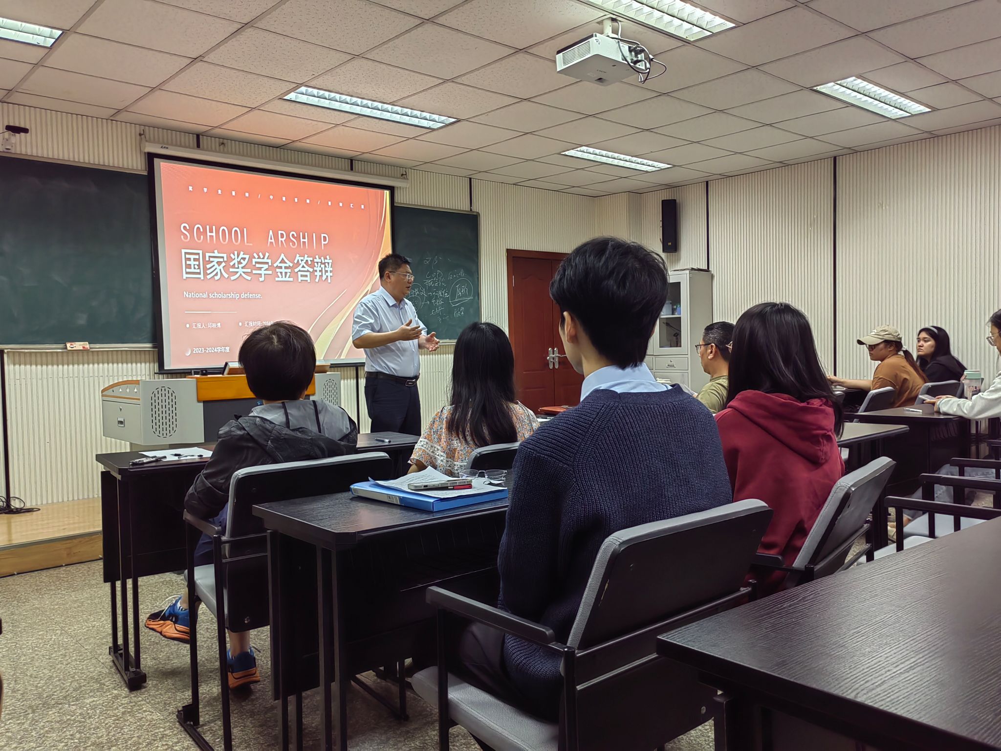 104教室举行。本次答辩评选会秉持公平公正、实事求是、公开透明的基本原则,对各年级经本人申请、年级评议申报的国家奖学金进行评选。
