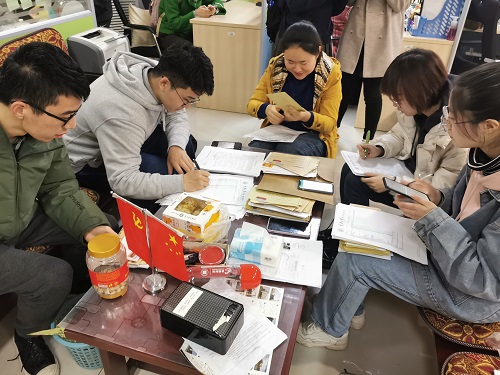 2021年3月10日下午,成绩单的打印、收集工作基本完成。19、20级各班班长、团支书齐聚虎溪校区松园办公室,紧锣密鼓地展开《给家长的一封信》和成绩单的装配和密封工作。各位班干部在王老师、李老师的带领下分工协作,有条不紊。装配工作以班级为单位进行。各位班干部分类整理、叠放本班文件,一一检查信封的书写、邮票的粘贴是否规范。合格的信封将进入资料分装密封环节,在确认信息无误后统一寄出。