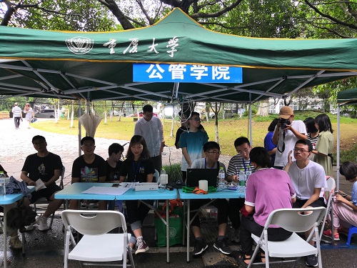 团委学生会的组织下,18、19级志愿者充分协调,迎新工作有序开展。