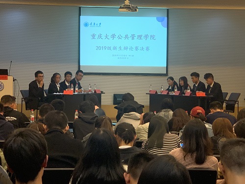 19级新生辩论赛总决赛于图书馆1F-9报告厅准时开始。学班主任兼18、19级辅导员王丽娟,辅导员助理谢镇江到场观赛。17级校辩论队队员马璇,公管研究生辩论队队长谢思捷,2016级校辩论队队长张炜昀担任评委。18级本科肉视频