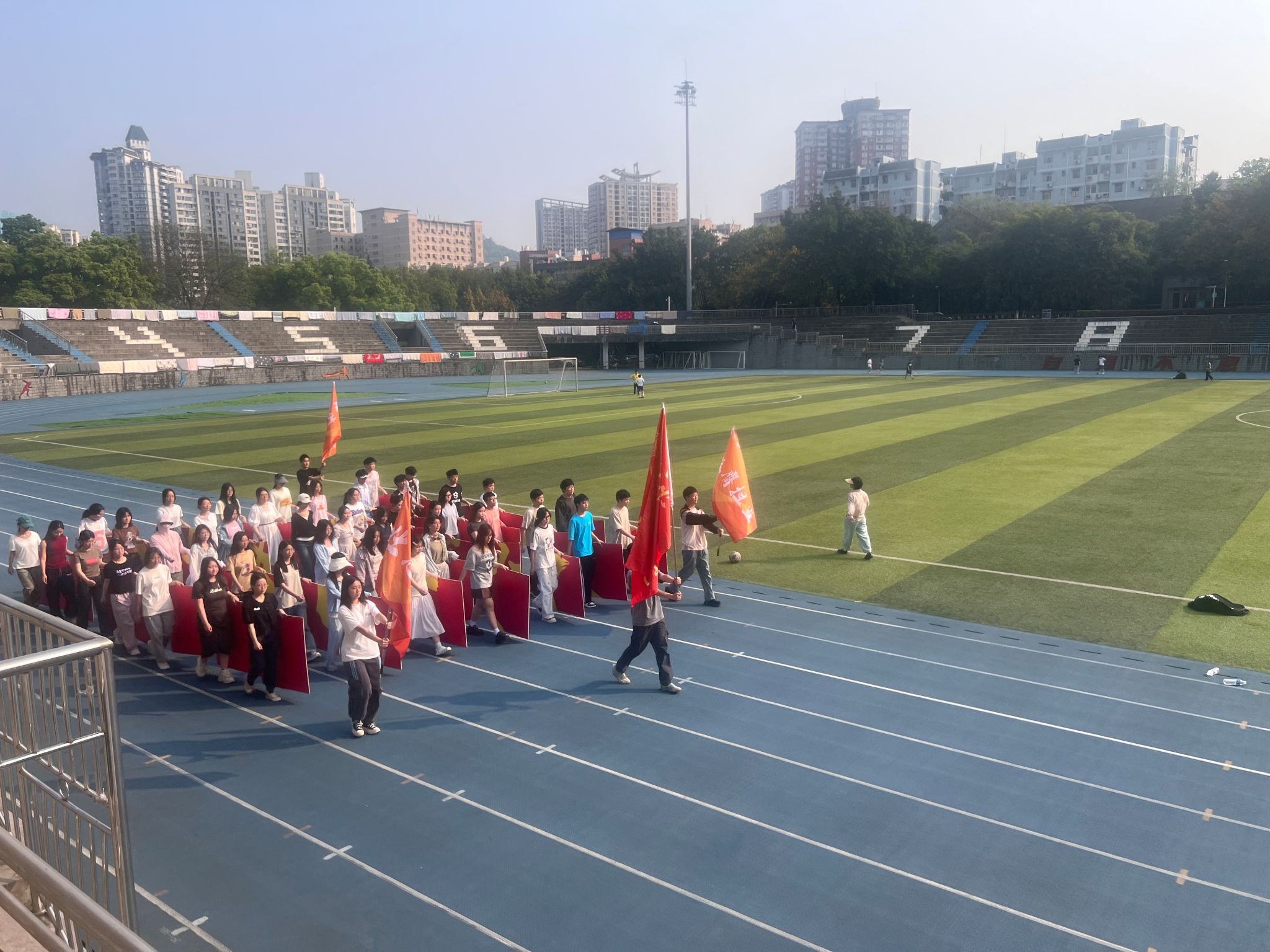 团委书记兼本科21级、23级辅导员徐柳老师及学办主任兼22级辅导员王丽娟老师的组织带领下,同学们积极投入,运动会前期各项准备工作有序进行。