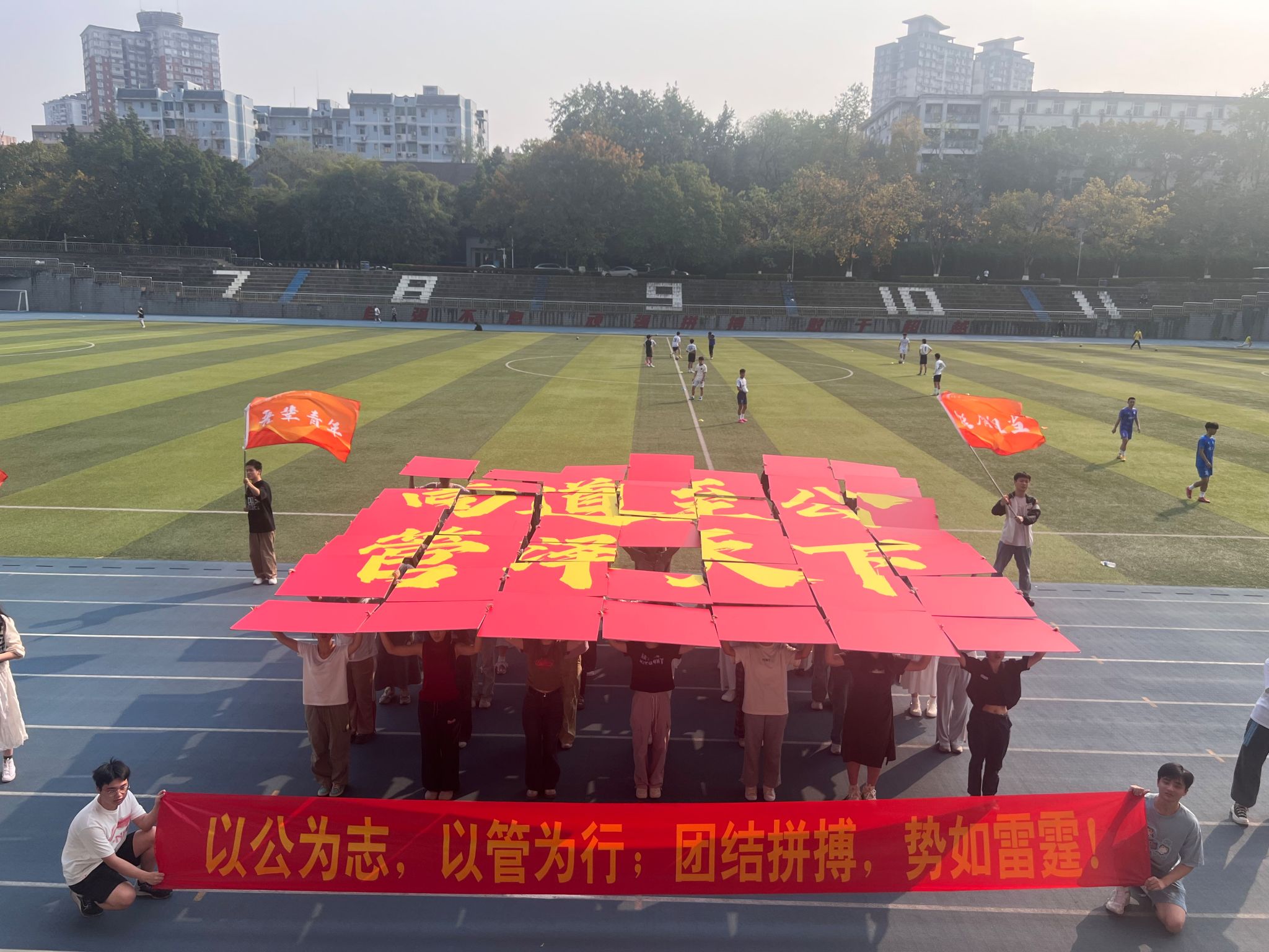 开幕式的方阵设计,商讨运动会的各项物资准备。从项目的策划、物资的采购、运动员的选拔到比赛过程中的值班安排以及后续的场地管理工作,都得到周密的落实。