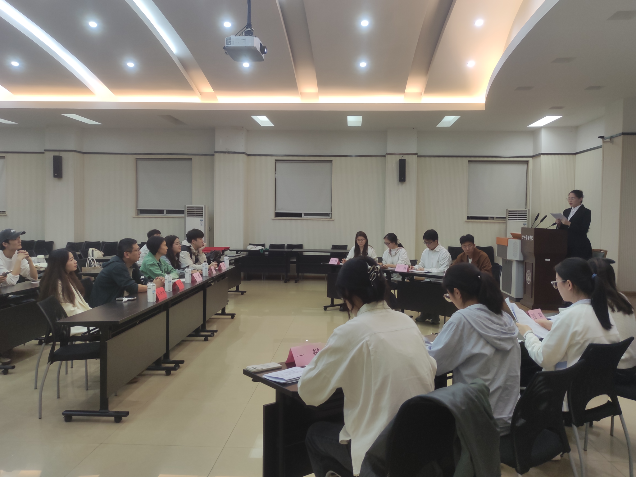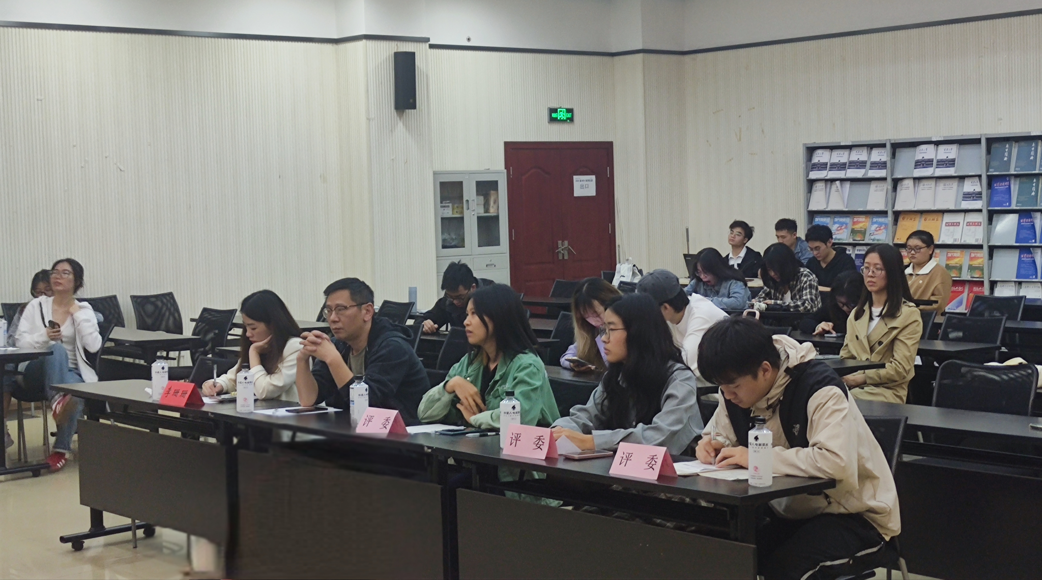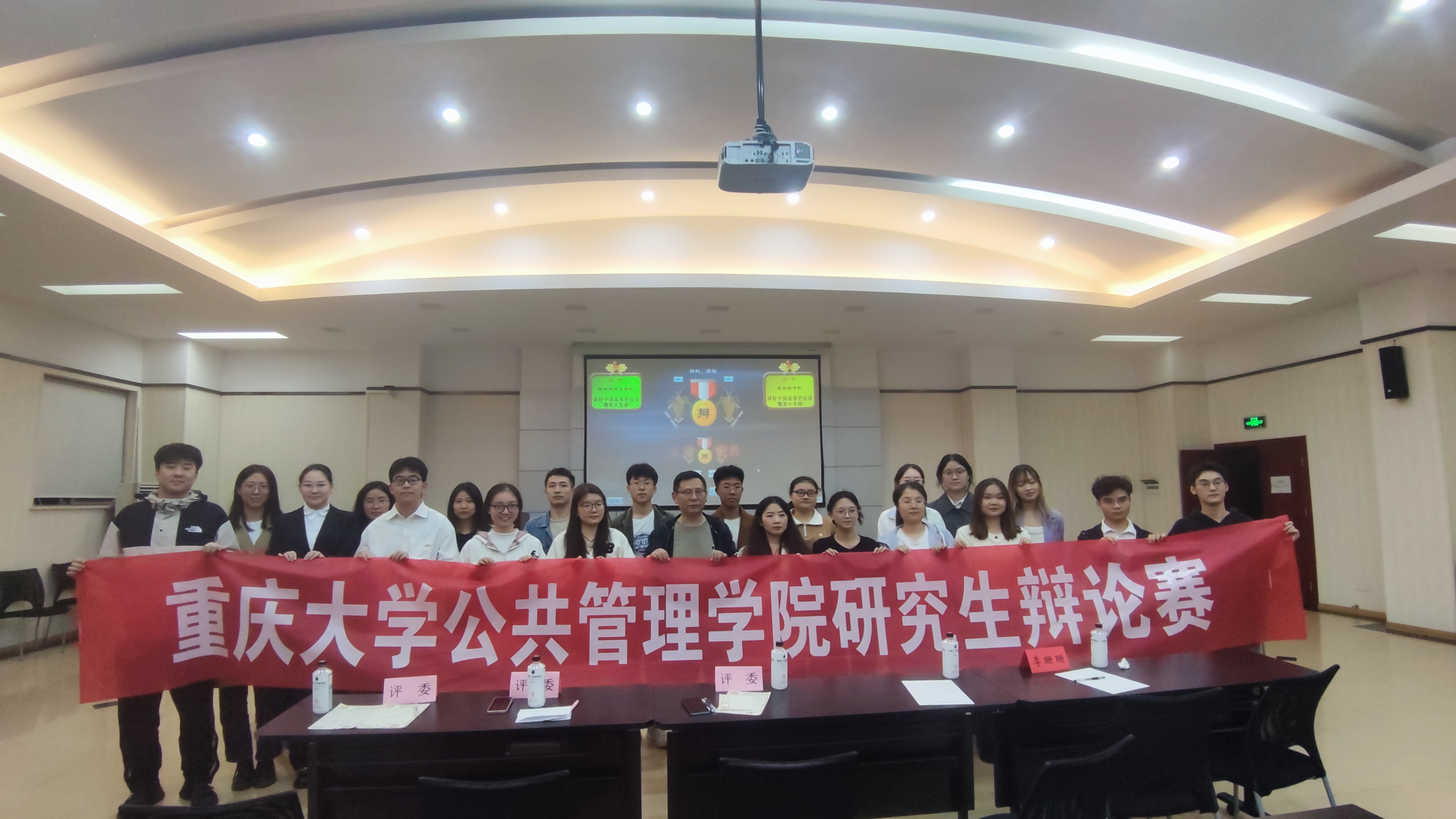 第十四届研究生辩论赛冠军队伍成员张迁、殷小娟、杨玲担任评委,研团学文艺部成员秦梦钰担任主持、艾灵担任比赛计时员。研究生辅导员肖干、李珊珊到场观赛。