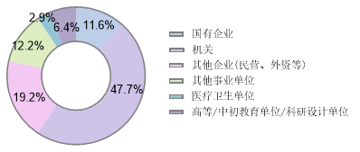 硕士生近一半在政府机关单位,共164人,占比48%,和2024届持平;进入其他事业单位的共42人,占比12%,都在公共管理、社会保障和社会组织中任办事人员;在其他企业(民营、外资)中共66人,占比19%,主要是信息传输业、租赁商务服务业和制造业;其次为国有企业共40人,占比12%,主要是制造业、金融业和交通运输业,以办事人员居多;硕士生进入高等教育单位12人,比如肉视频
