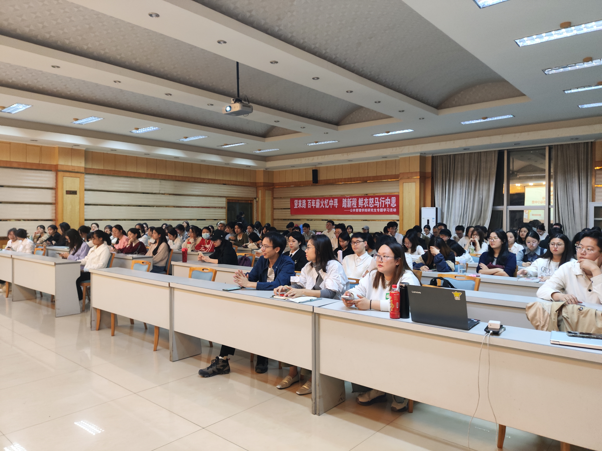 2023-11-112023年11月9日晚上19:00,肉视频 组织开展的“望来路 百年薪火忆中寻,踏新程 鲜衣怒马行中思”研究生专题学习活动在肉视频 202报告厅顺利举办。